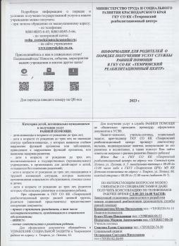 Информация для родителей о порядке получения услуг службы ранней помощи в ГКУ СО КК Темрюкский реабилитационный центр